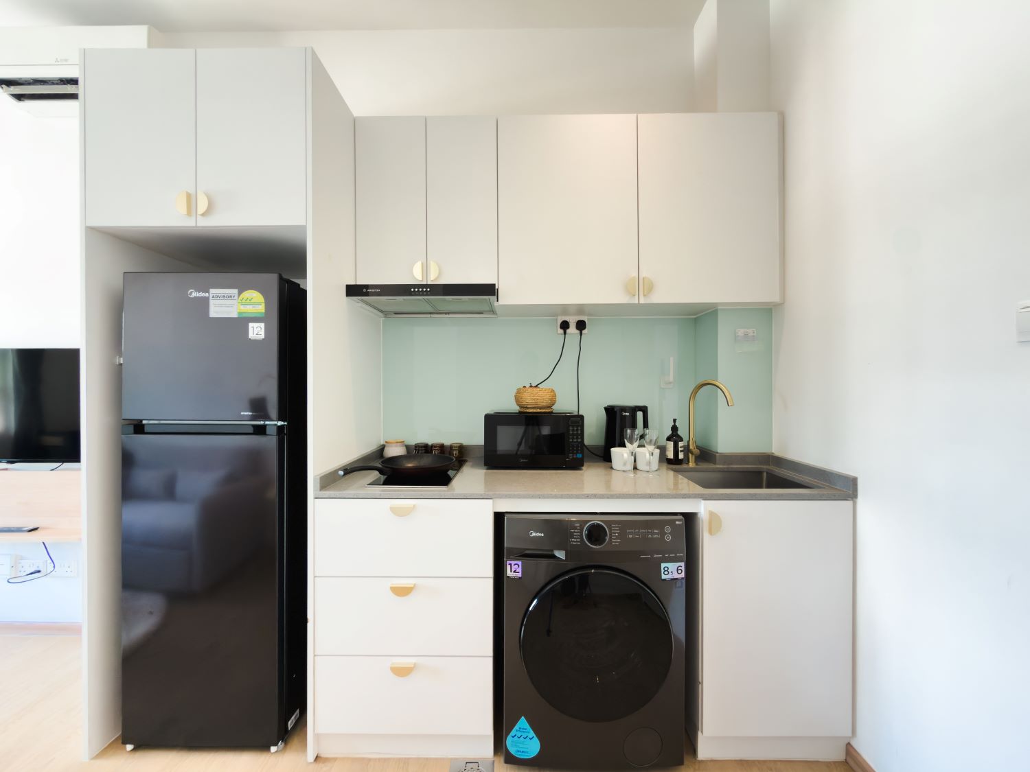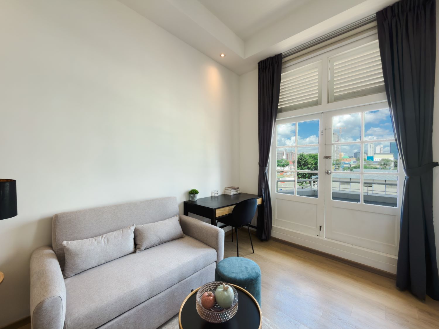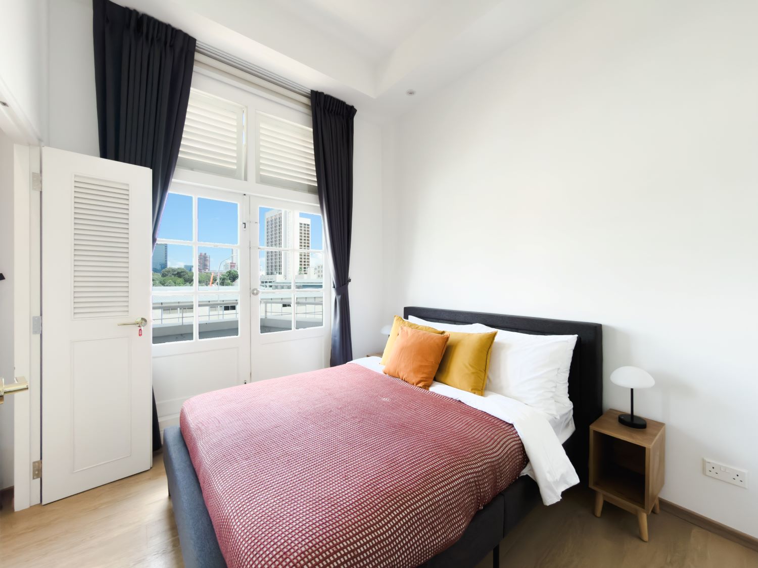 A spacious serviced apartment in Bugis with a separate living area and bedroom, offering a calm retreat for couples, friends, or small families to relax and recharge in Singapore accommodation, just steps from Bugis MRT.